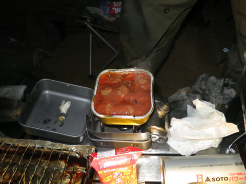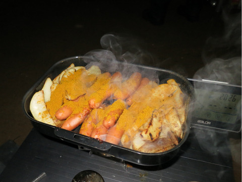 冬キャンプなので体の暖まるものを、と思って作ってみたのですが、他の参加者さんもソーセージやポテトを持ってきている人が多く、メニューが被ってしまったので大量に売れ残り。