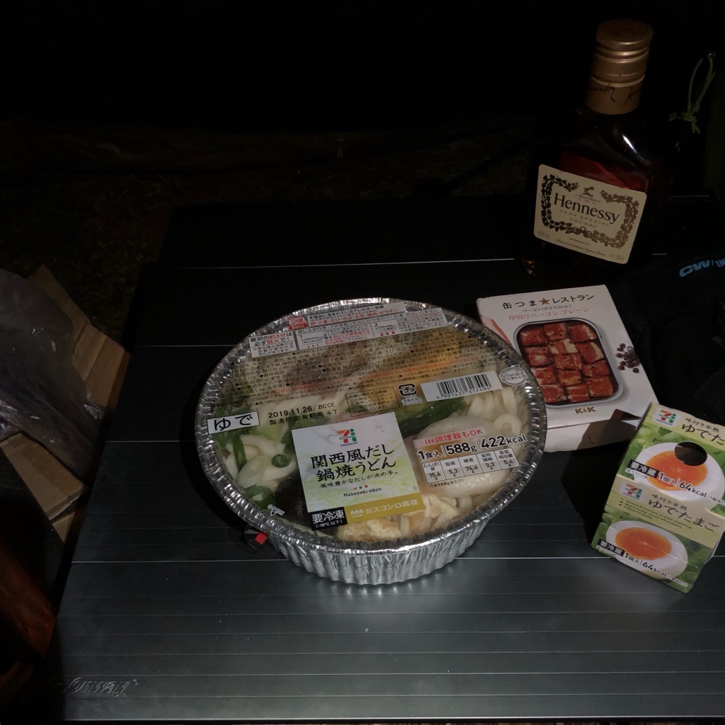 ワカサギが釣れなかったので、夕食はセブンイレブンの鍋焼きうどんになりました(汗)