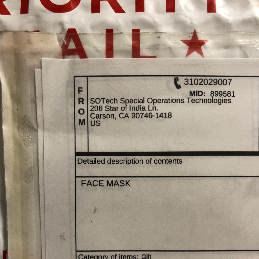 コロナウイルス騒動がピークだった4月下旬、アメリカの装備品メーカー「S.O.Tech」が米国の警察や政府機関などの前線で活動する人向けに再使用可能な布マスクを発売しました。