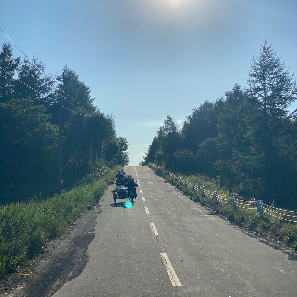 この日はギヤアップに乗るH氏が合流し、ウラル4台で、先ずは私のリクエストで開陽台を目指します。