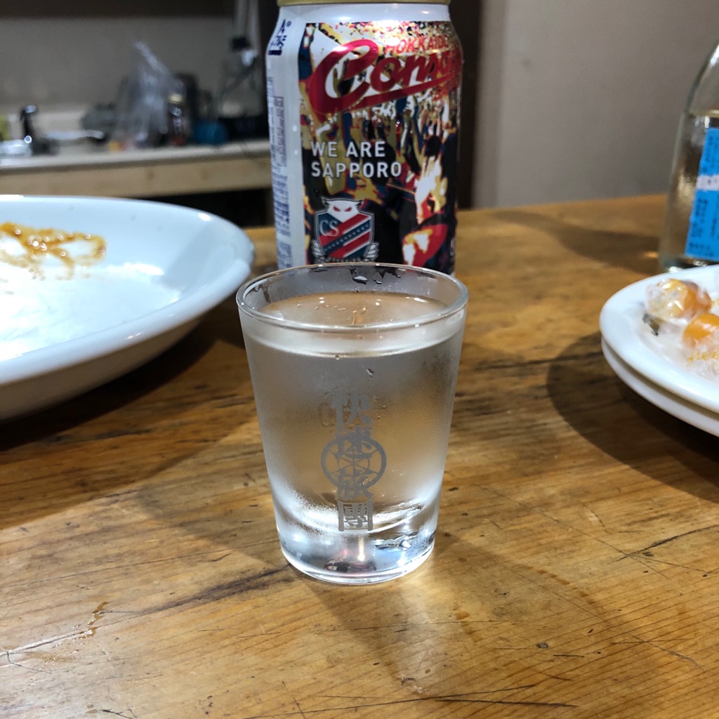 弟子屈に帰還後、先日購入した快速旅団のショットグラスで冷酒を頂きました。