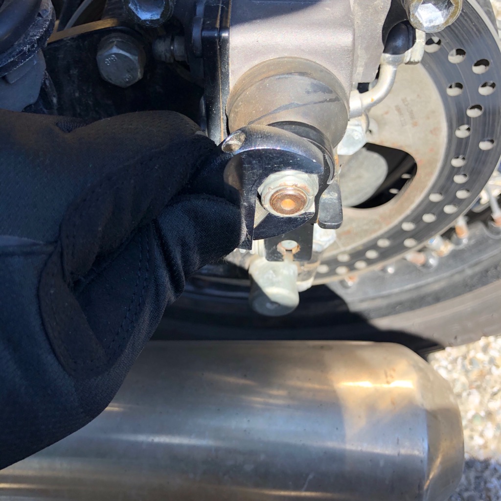 途中、サイドブレーキが利かなくなったので調整しました。(道の駅「もみじ川温泉」にて)