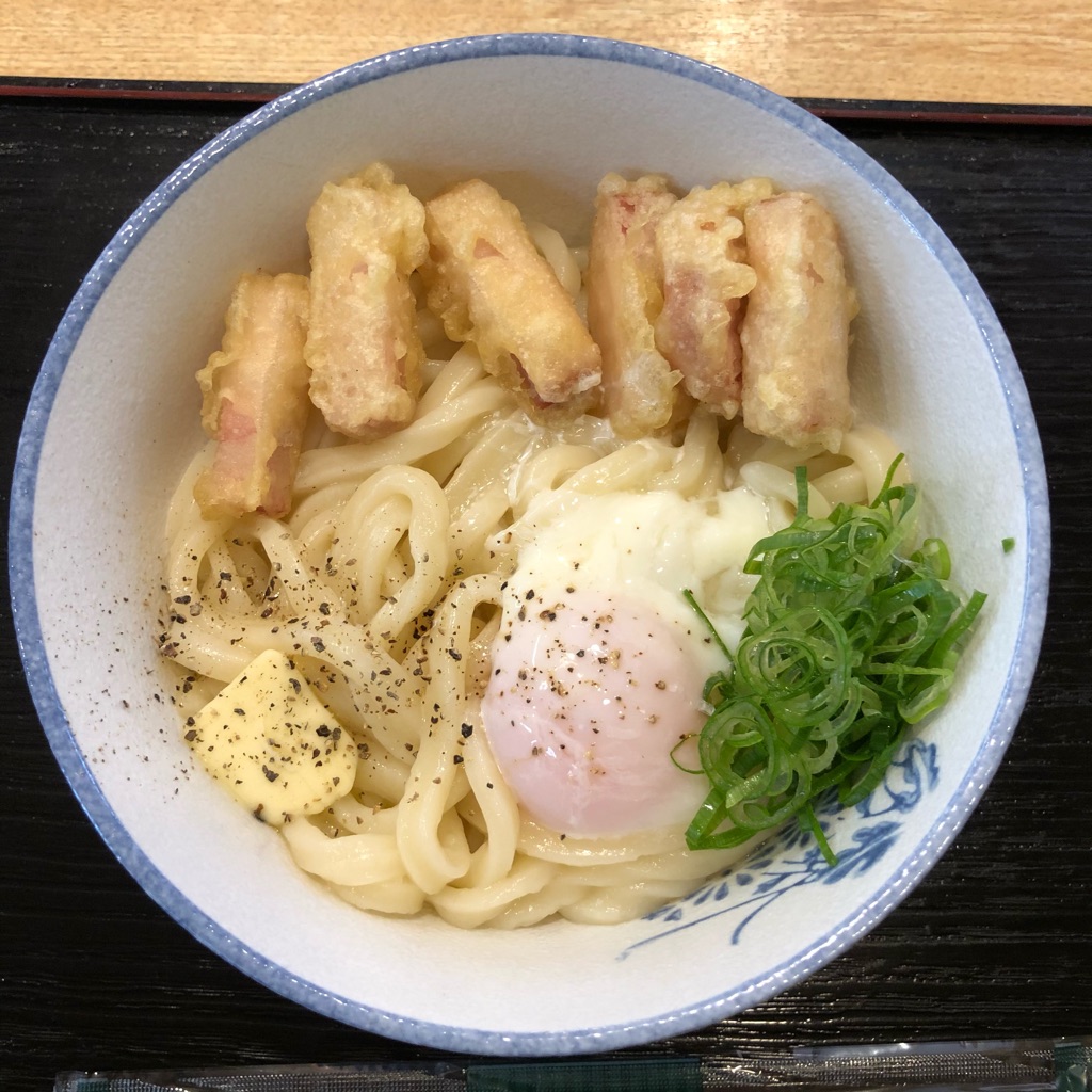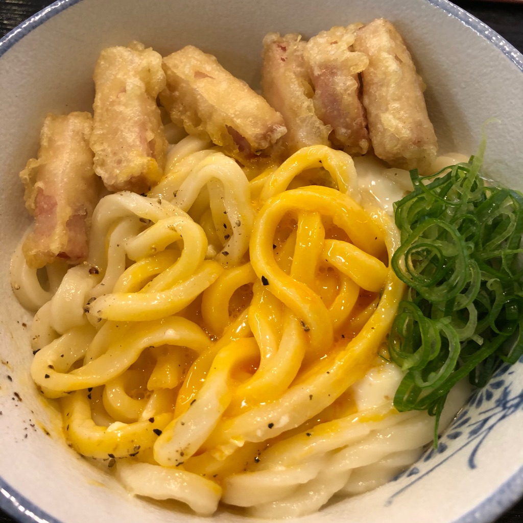 かき混ぜると熱いうどんに絡まる玉子とバターの風味が良く合って、美味しく食べられました。