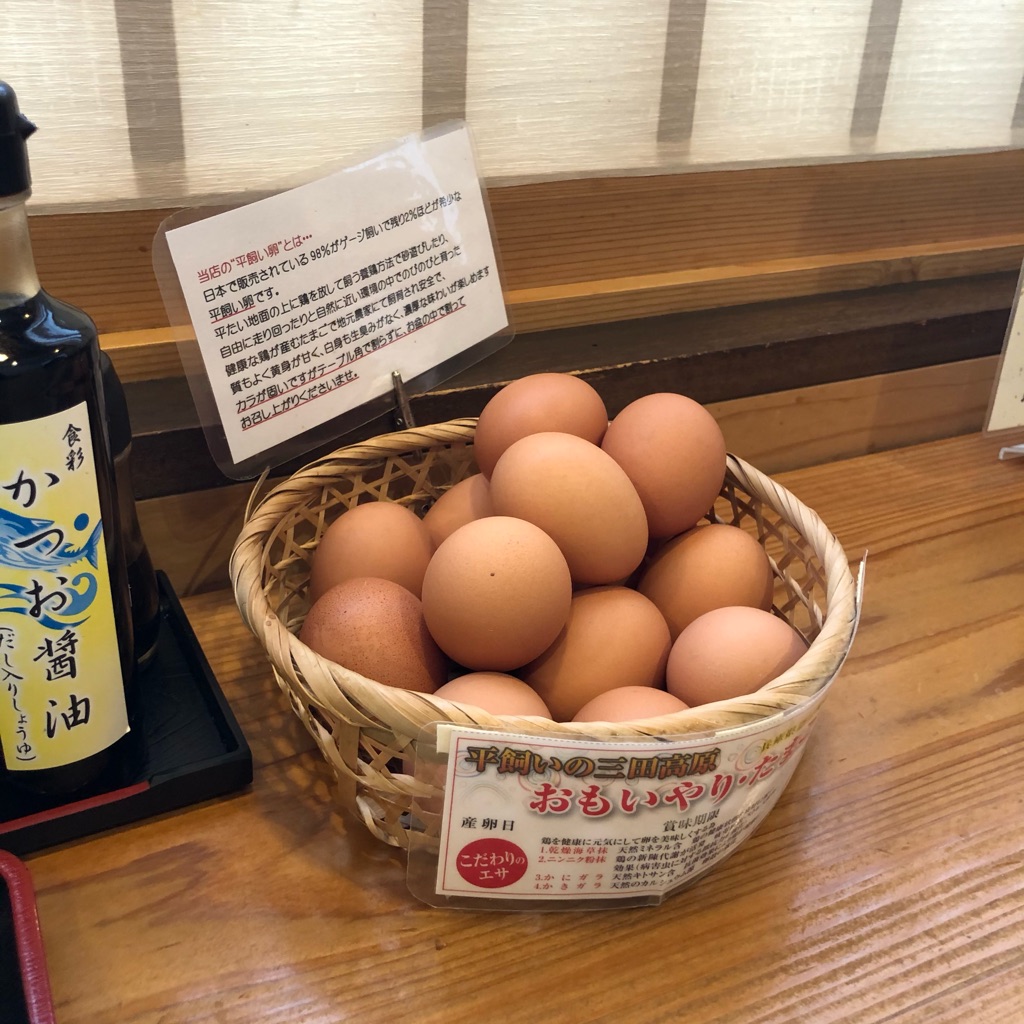 トッピングの生卵はプラス50円で半熟卵に変更しています。