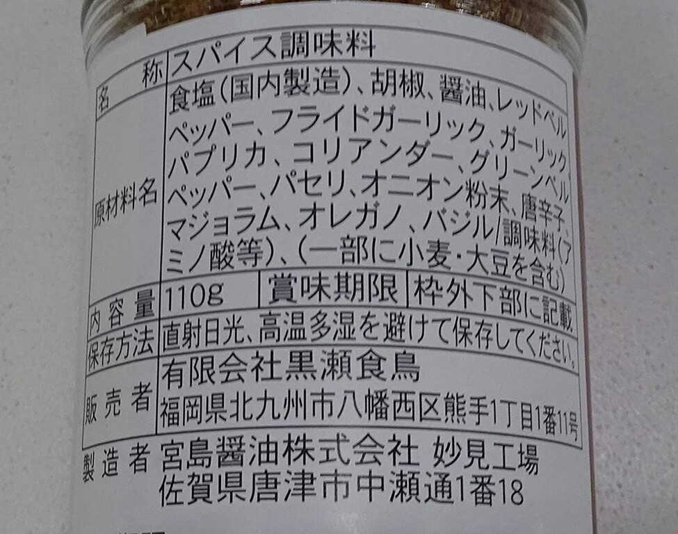 しかし使用されている材料は全く同じで、どちらも製造者は佐賀県の「宮島醤油株式会社 妙見工場」となっており、「いきなり!スパイス」は「黒瀬のスパイス」を参考に開発された可能性が高いと思われます。