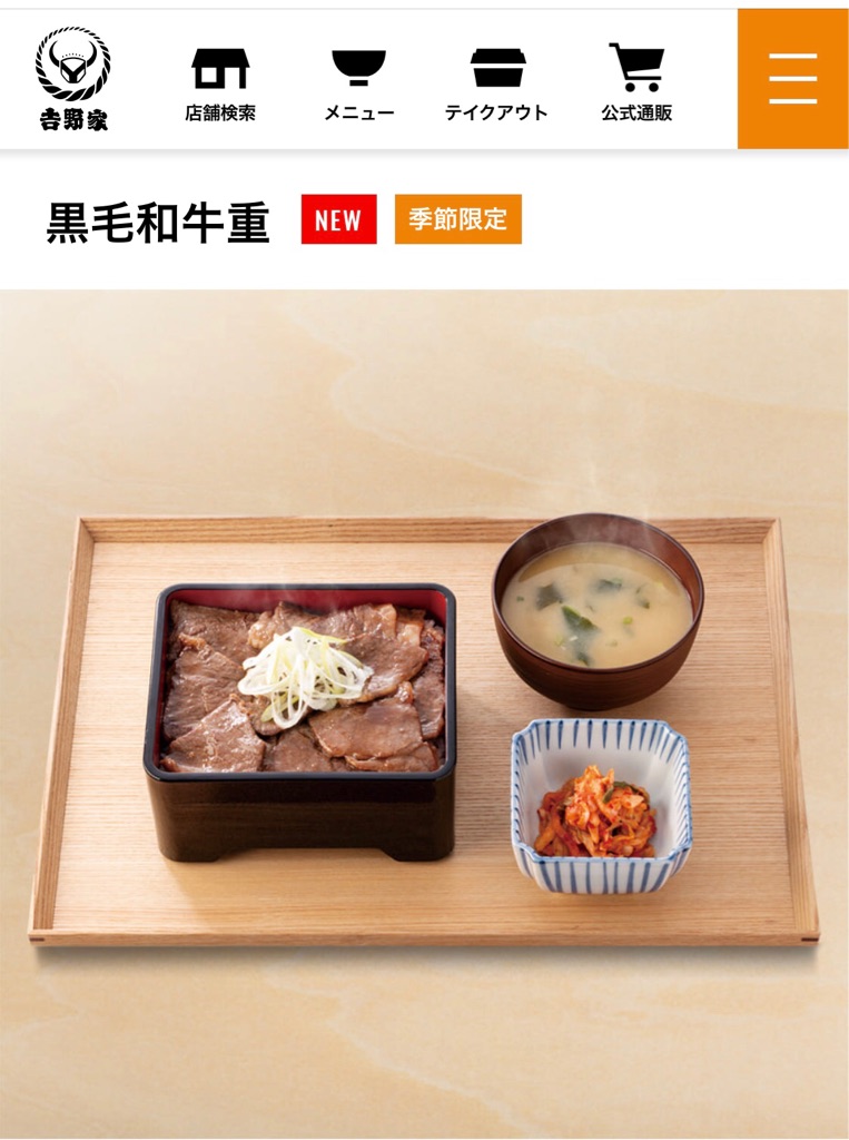 本日8月12日から吉野家の新商品「黒毛和牛重」が限定発売されました。