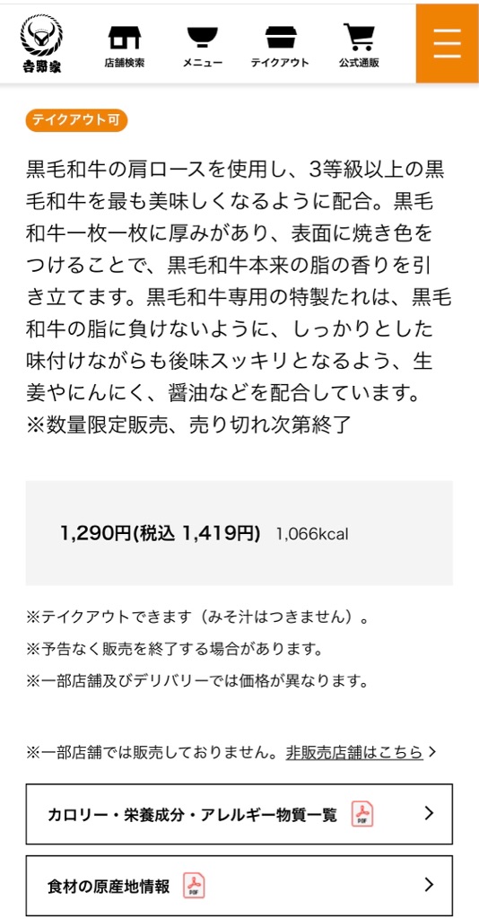 価格は税別1290円で、店内飲食だと1419円ですが、テイクアウトだと1393円。