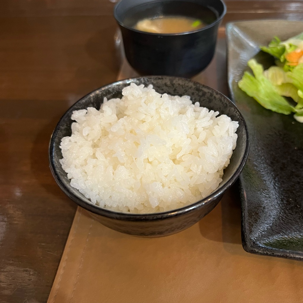 ご飯、味噌汁、サラダ付き。