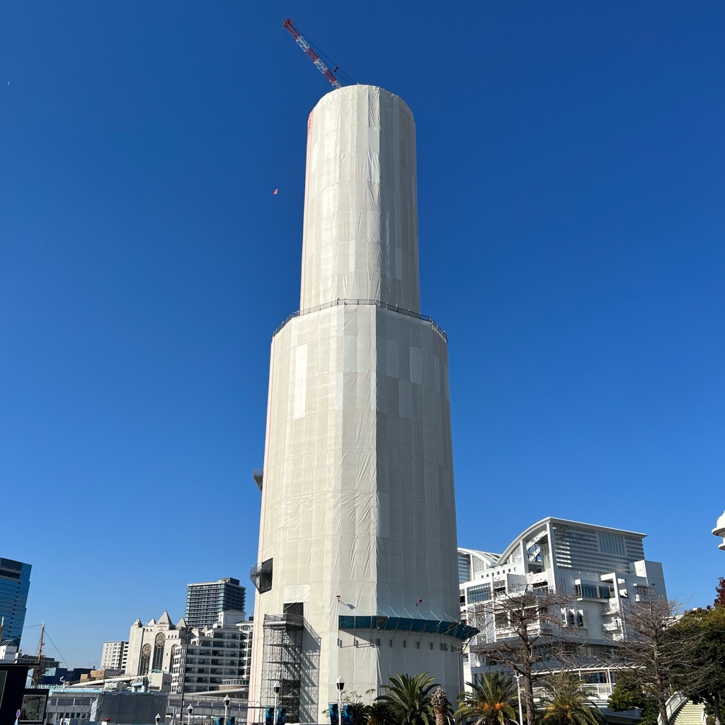 シンボルのポートタワーはリニューアル工事中。