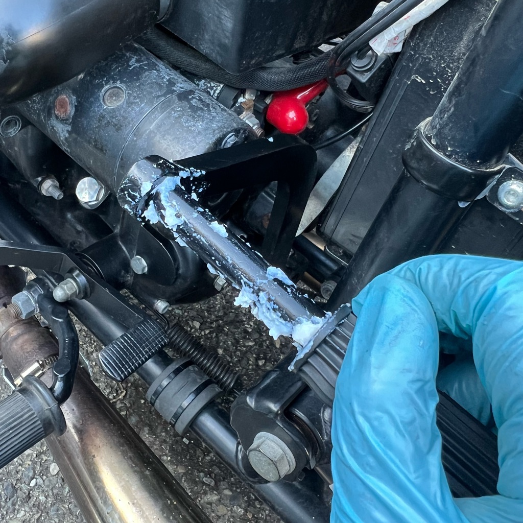 そこで、取り付け部分にビードクリームを塗ってみました。