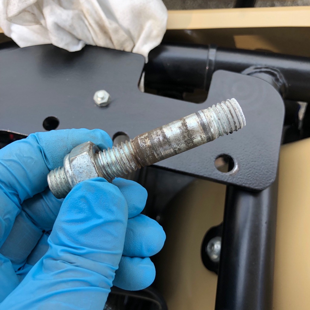 この部品、2016年式時点では両ねじボルトとブラケットの2ピース構造になっていて、大きな負荷が掛かるとボルトが緩んでしまう不具合がありました。