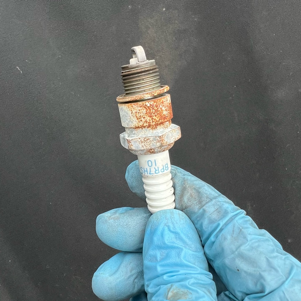 プラグ自体は外観が錆びていますが中心電極の摩耗はなく、焼け色も綺麗でした。