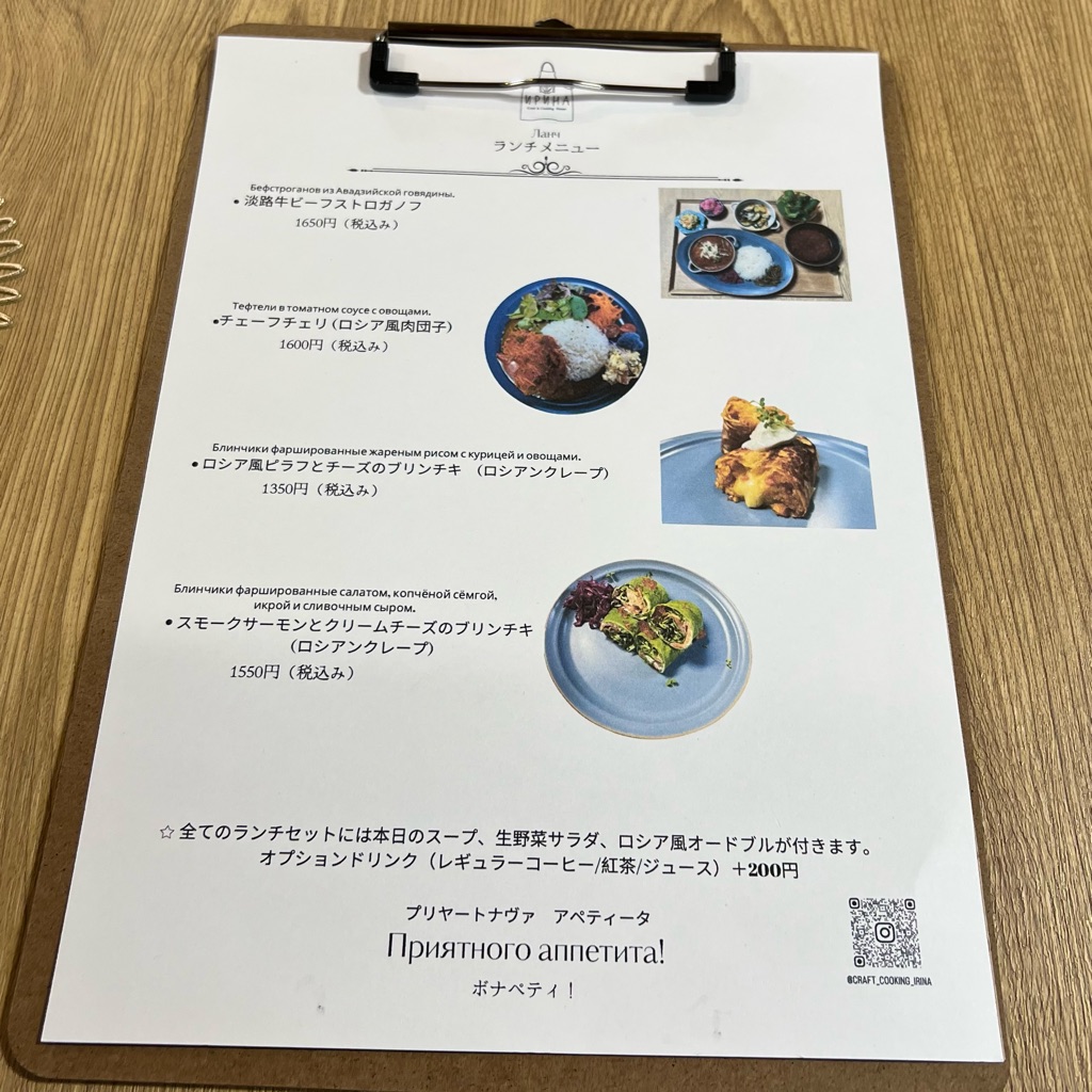 基本日替わりのランチメニューは、ここにあるものの他にピロシキランチ(1個700円、2個1000円)があります。