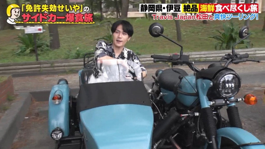 番組ゲストのTravis Japan松田さんが乗るのはウラルサイドカー。