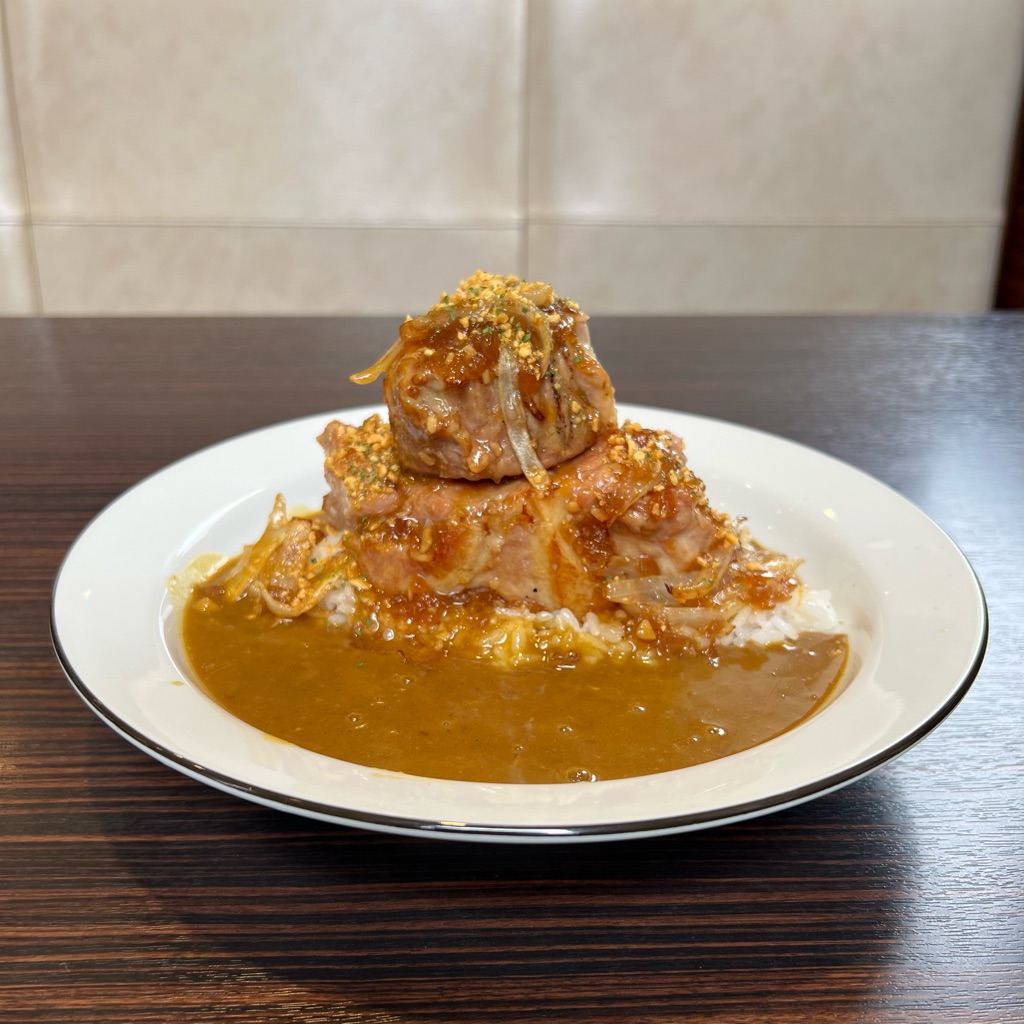 「肉塊カレー」と言うのは通称で、2023年4月に「ナナシカレー」として期間限定・店舗限定で販売され、販売と同時に公式サイトで開催した「新メニュー名総選挙」でユーザーの投票により「ホロ肉ドカンと豪快カレー」と言う正式名称が与えられています。