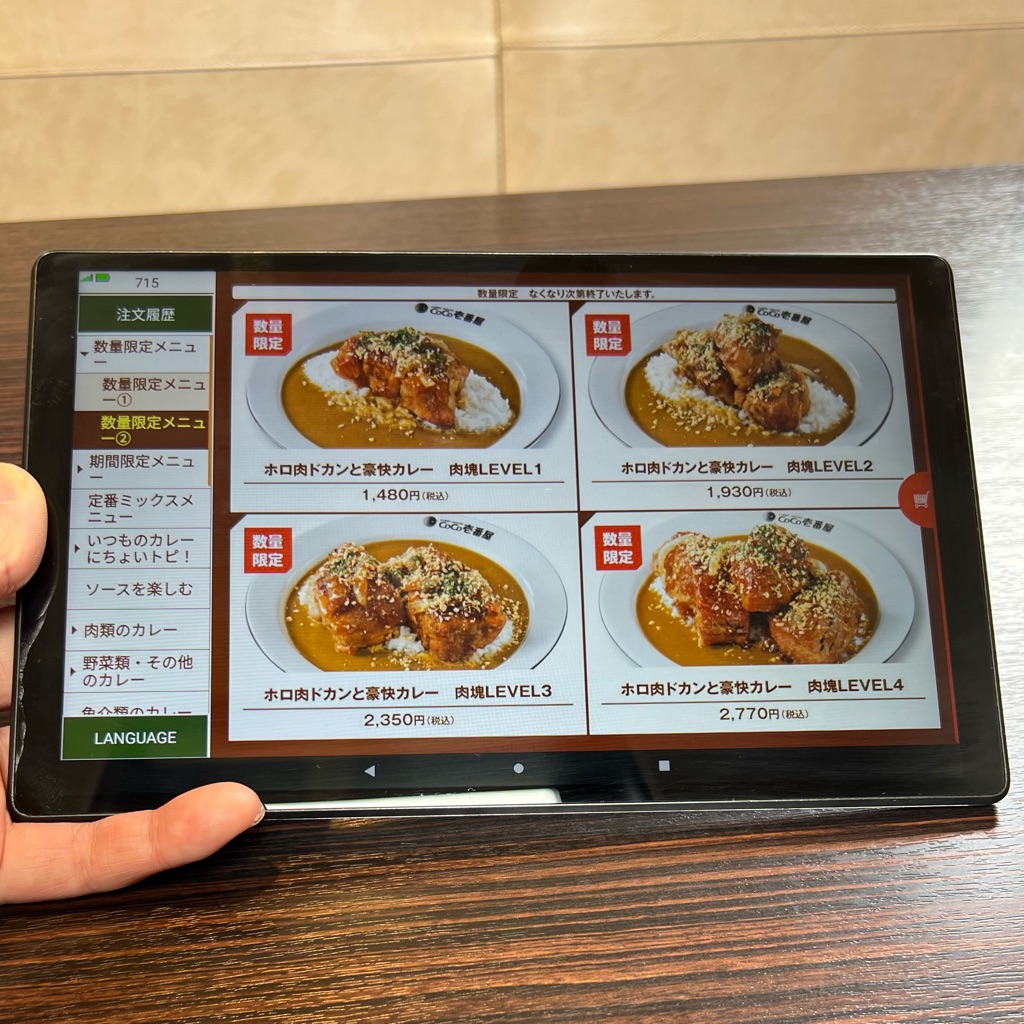 こちらのお店ではタブレット注文が導入されていました。
