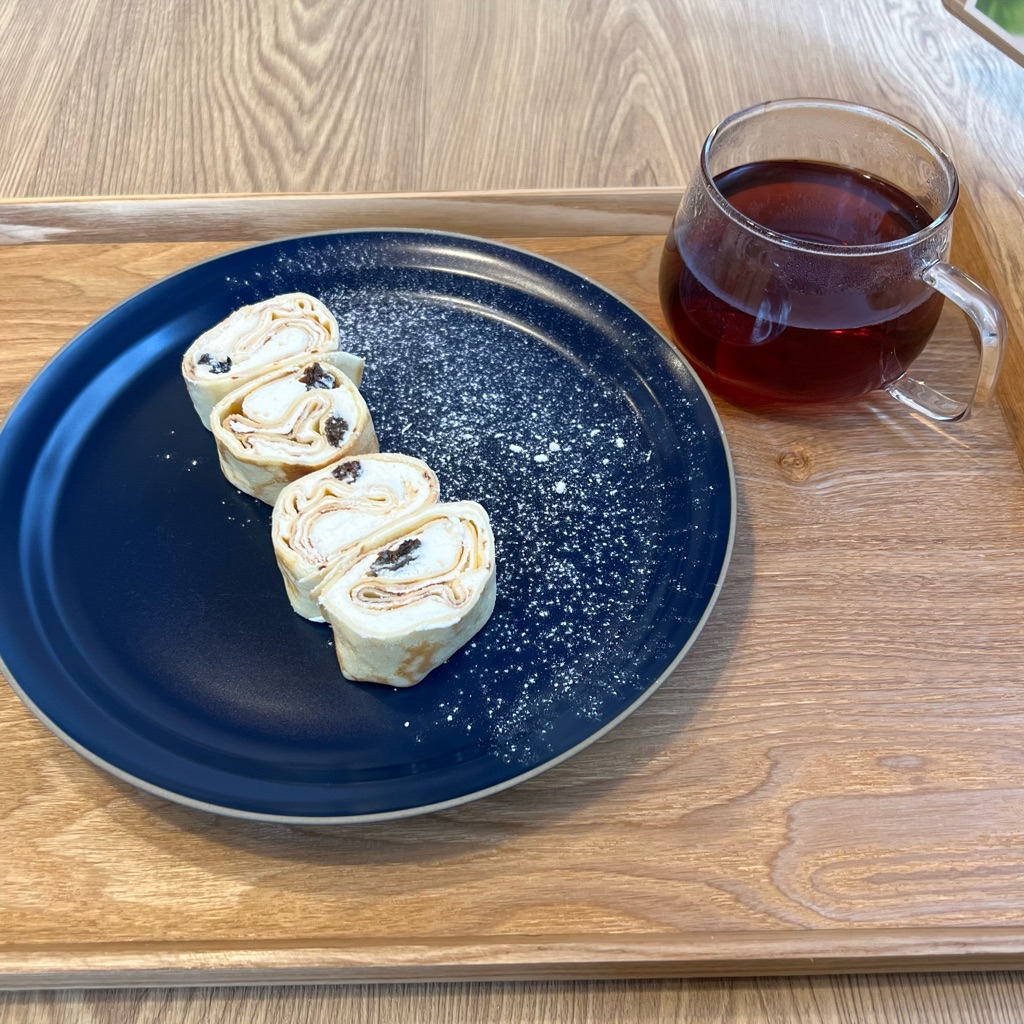 本日のデザートは自家製カッテージチーズとレーズンのブリンチキ。