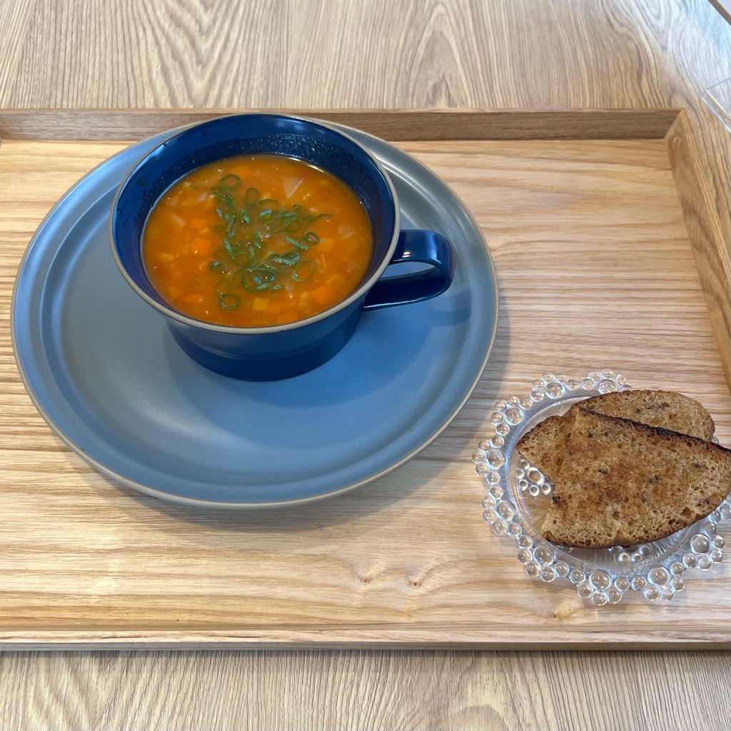 ボルシチ(350円)とライ麦パンのガーリックトースト(150円)