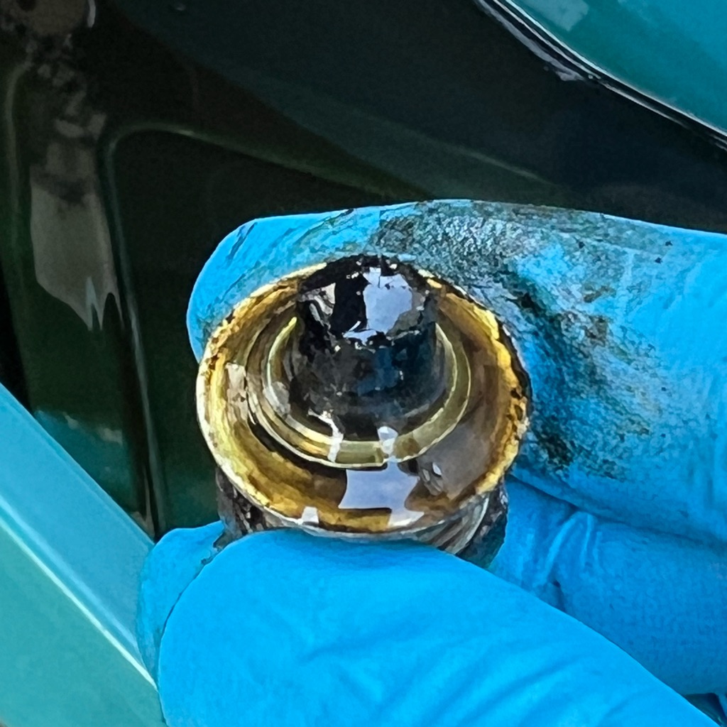 黒い点状のものが見られますが、これは金属片ではなくカーボン汚れのようです。