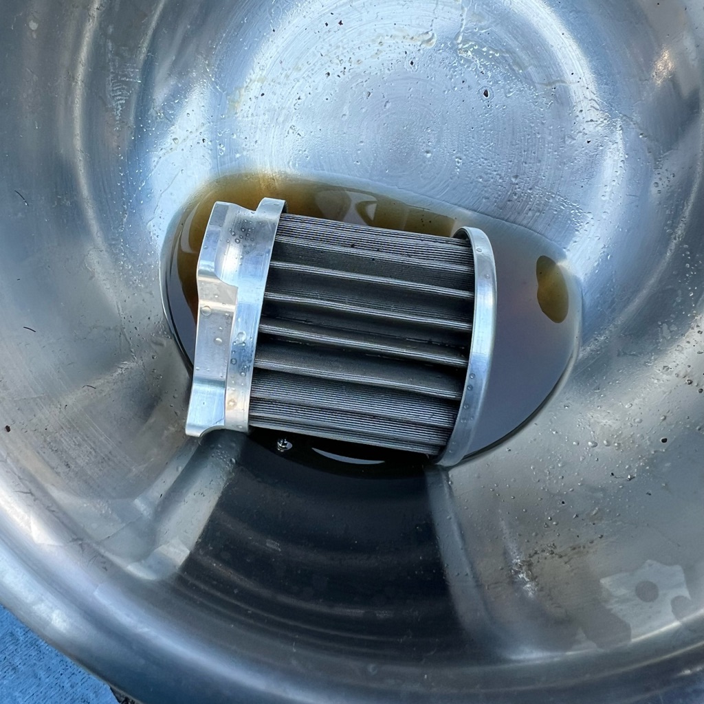 洗い油に浸けてフィルターが回収した異物を落とします。
