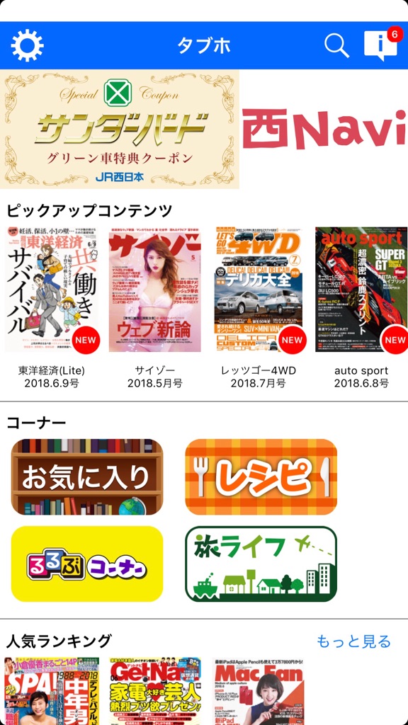 電子書籍アプリのタブホは上記のグリーン車特典アプリと連携しており、グリーン車乗車中であればタブホにある雑誌が読み放題となります。