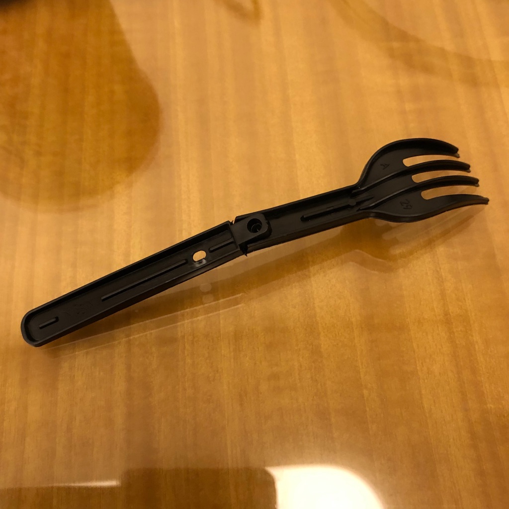 蓋を開けると内部に折りたたみ式のフォークが入っていました。