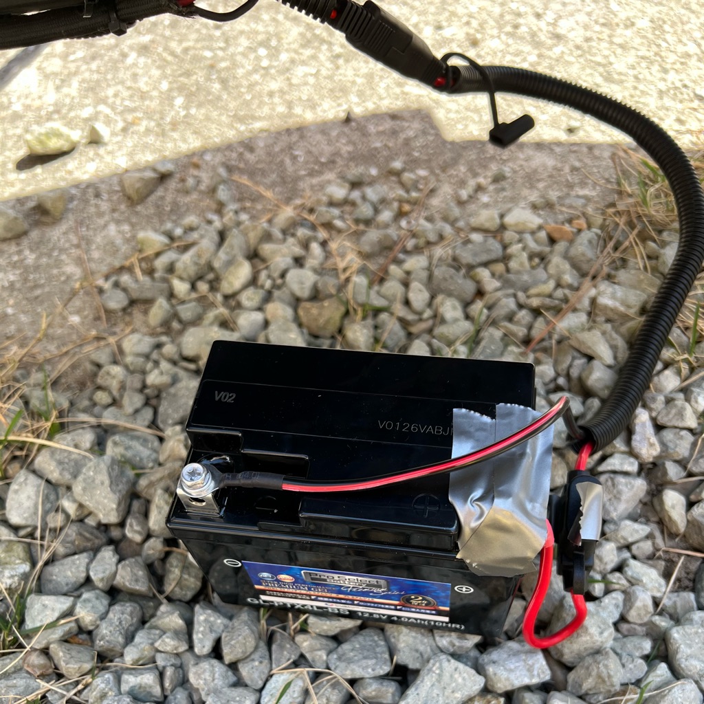TZRのバッテリーは補充電し易いように、電源コードをオプティメイト4と同じSAEコネクタに交換しています。