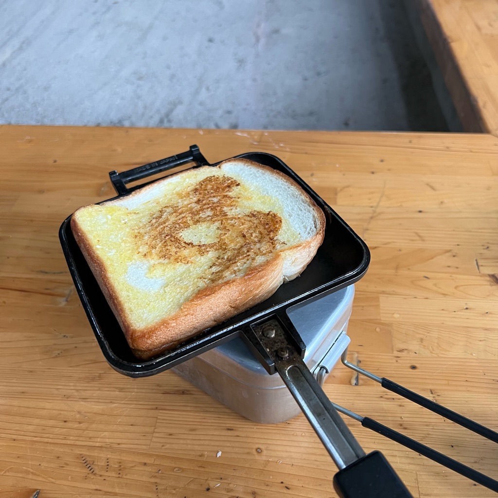 朝食はお手軽に食パンを焼いてガーリックバタートースト。