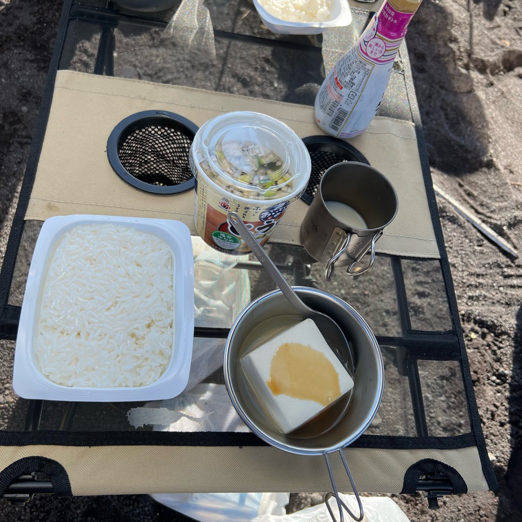 朝食はご飯と味噌汁、昨日の残りの湯豆腐。