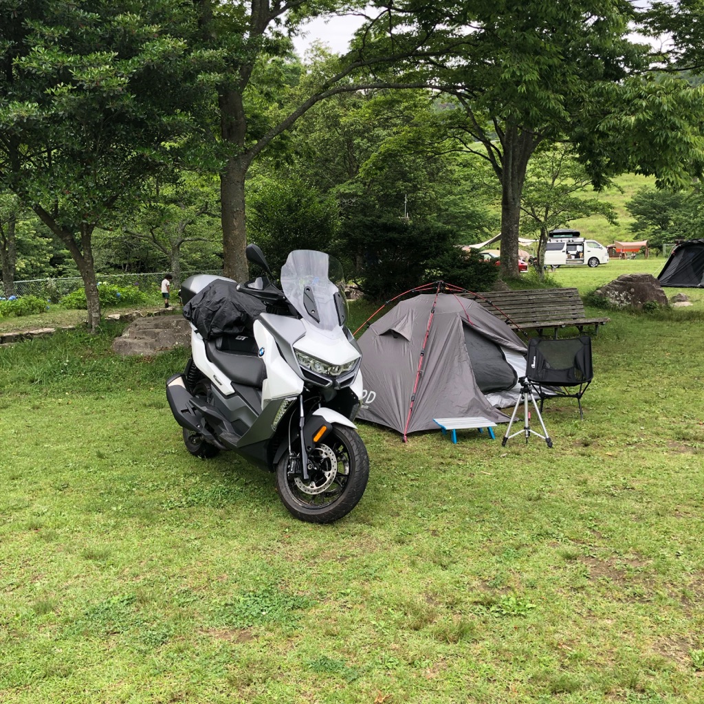 一方バイクでソロキャンだと、空いているところに難なく設営できるので気楽です。
