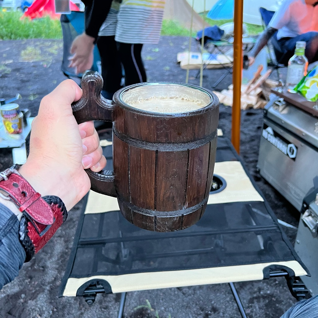 持参のマイジョッキで一気に煽ります。