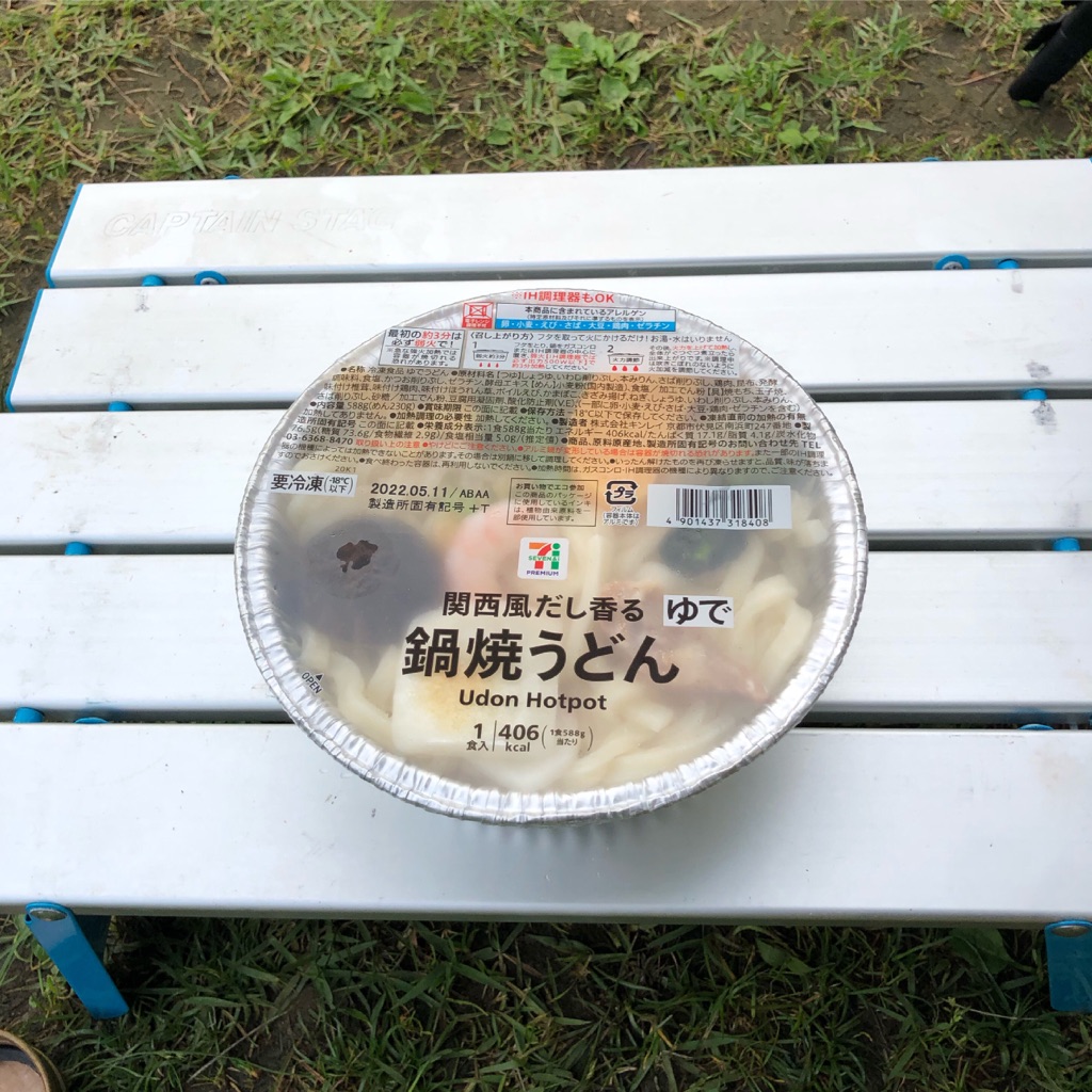 当ブログではキャンプ飯として定番の(笑)セブンイレブンの鍋焼きうどんです。